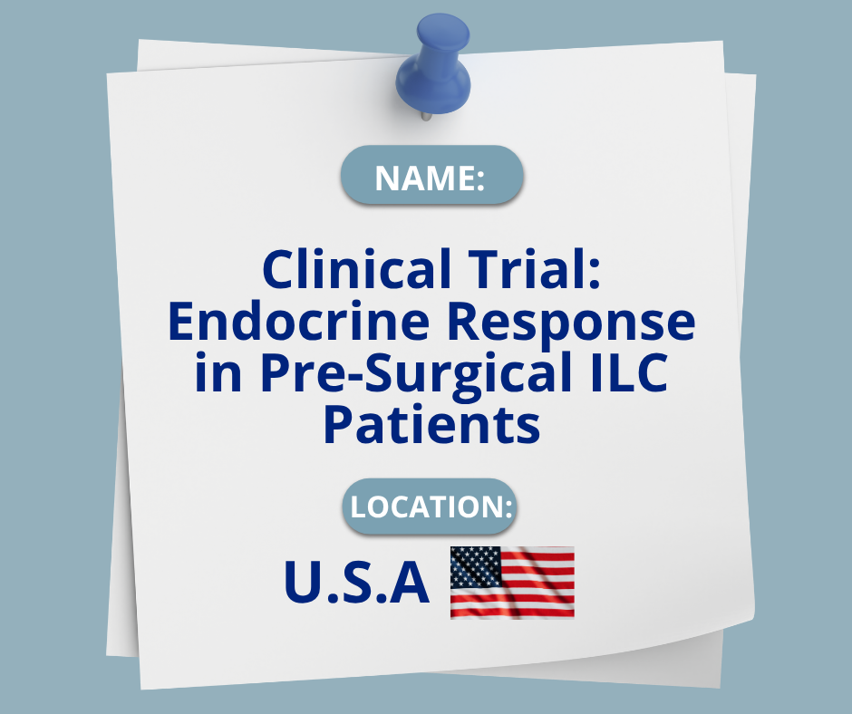 LBCA tracks and shares information about important clinical trials and studies here when we learn of them. Trials and studies that focus on or specifically include patients with ILC are highlighted below. If you find a clinical trial on the Internet and think that you might wish to enroll, it is important to speak with your oncologist before doing so.